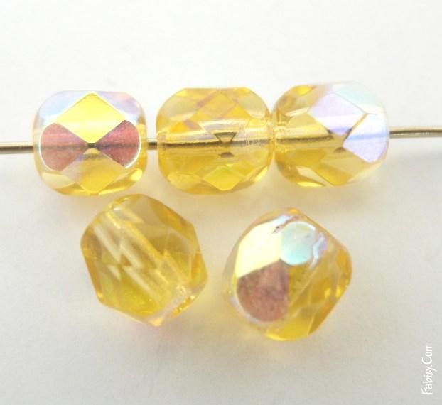 NEW! 30грн(50шт) Намистини чеські скляні грановані 4мм Light Topaz AB 10020-28701