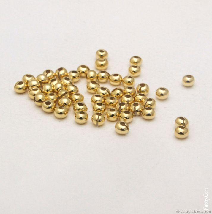 NEW! 32грн(10шт) Намистини-крипми срібло 925 в позолоті діам 1,8мм отв 0,9мм Ag925 KH018