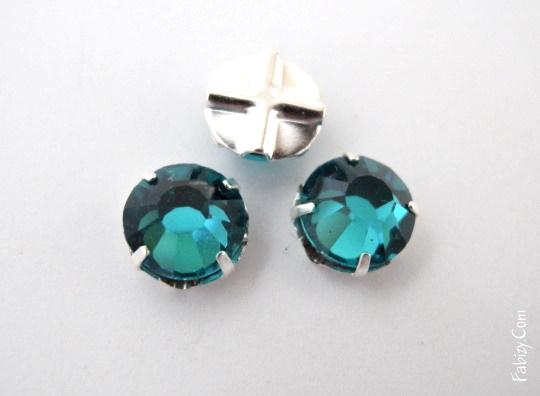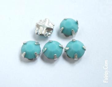 Нова ціна! 10грн(10шт) Стрази пришивні Preciosa 12гранні ss16 Turquoise в цапах - срібло гальваніка. , 8141-1554s. Стара ціна 20 гривень