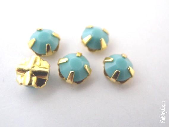20грн(10шт) Стрази 12гранні пришивні Preciosa ss20( 4,6-4,8 мм) Turguiose в цапах золото , 8141-1565g.