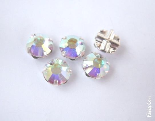 NEW! 15грн(5шт) Стрази пришивні 12гранні Preciosa ss16 Crystal AB в цапах. Гальваніка-срібло VIVA16